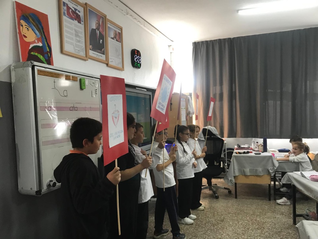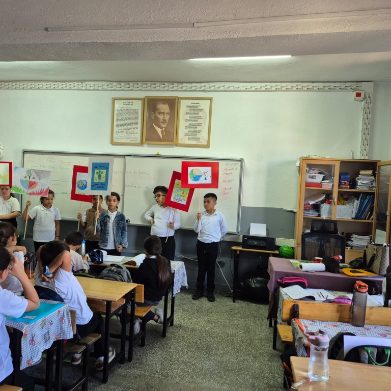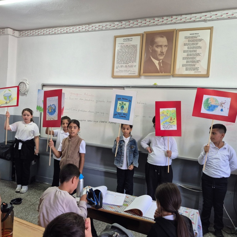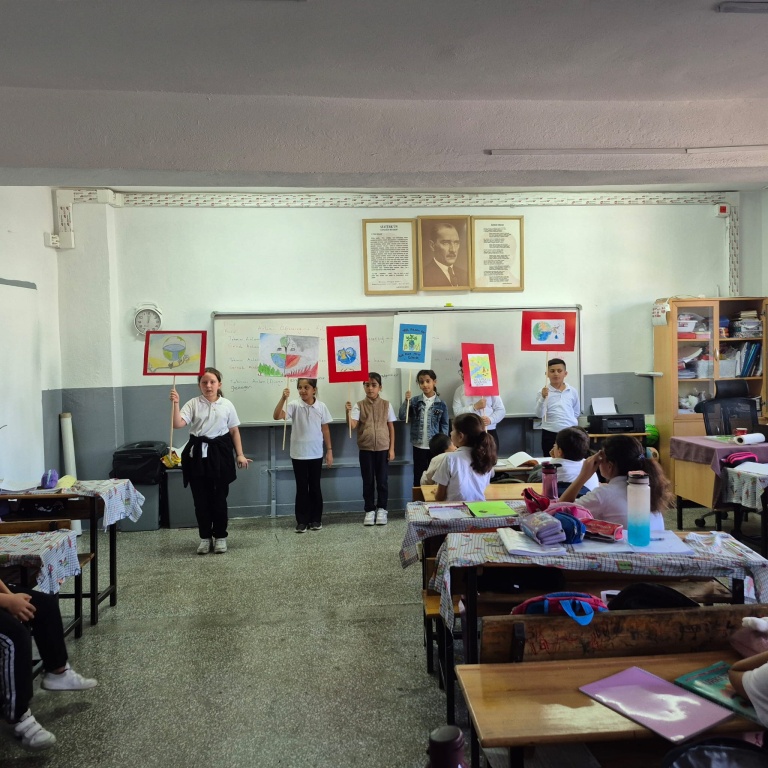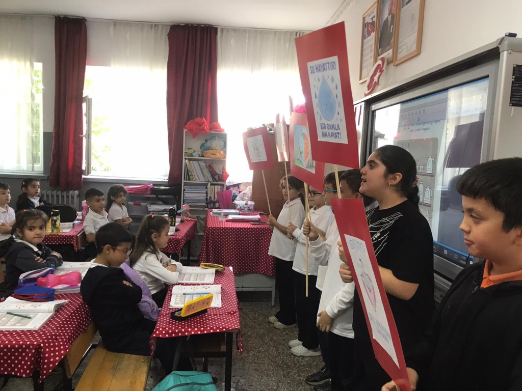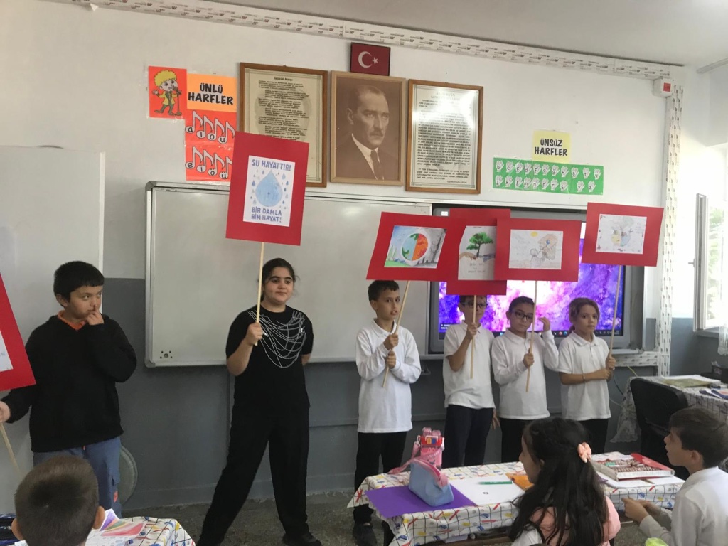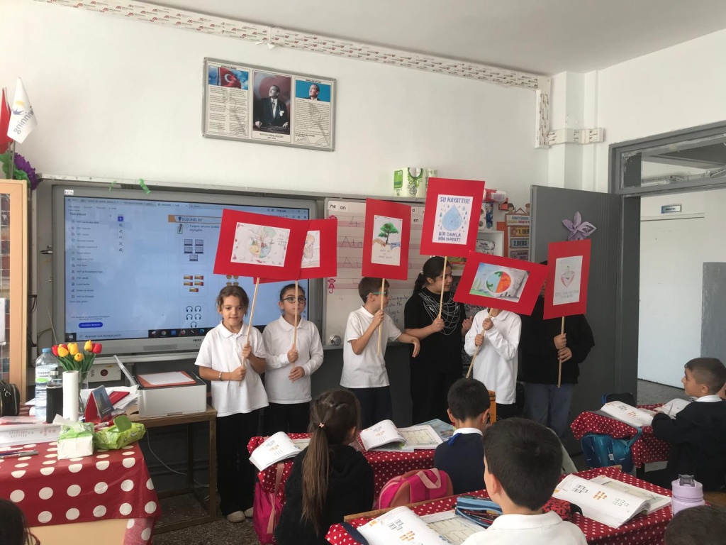 4/B SINIFI ÖĞRENCİLERİ, ÖĞRETMENLERİ EMİNE EKİNCİ ÖNDERLİĞİNDE SU ELÇİLERİ PROJESİ KAPSAMINDA, SUYUN ÖNEMİ İLE İLGİLİ FARKINDALIK ÇALIŞMASI GERÇEKLEŞTİRDİLER.